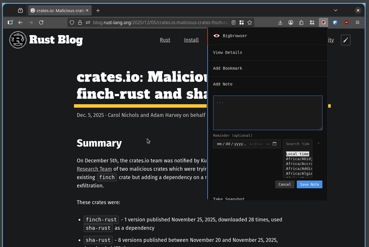 Attach notes to any page directly from the extension. Notes can become reminders: check back when that book releases, or remember to look at this product next quarter.